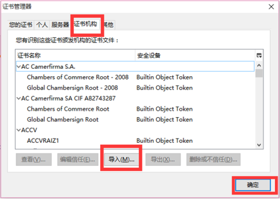 9、選擇“證書機構”選項卡,然后點擊“導入”按鈕