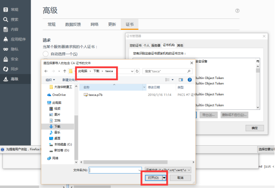 下載根證書安裝包至本地計算機(文件名為: taxca.p7b證書文件)。