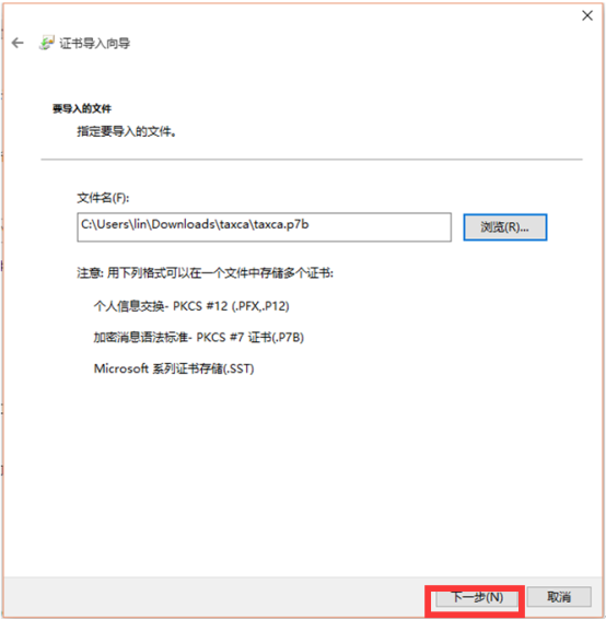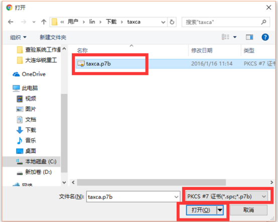 下載根證書(shū)安裝包至本地計(jì)算機(jī)(文件名為: taxca.p7b證書(shū)文件)。