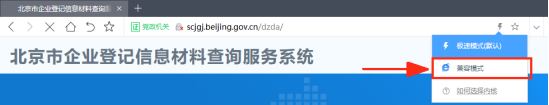 瀏覽器打開以后默認(rèn)為極速模式,此時切換“兼容模式”只需按照上圖,單擊網(wǎng)址欄右側(cè)圖標(biāo)進行選擇即可(注意使用過程中,要隨時將極速模式切換成兼容模式!)。