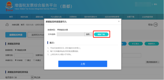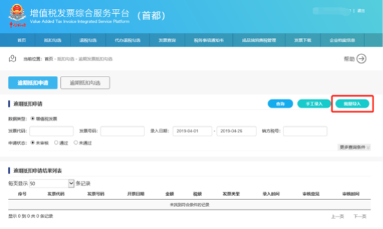 (1)在‘逾期抵扣申請’頁面中點(diǎn)擊‘批量導(dǎo)入’