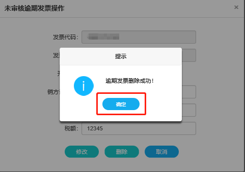 點(diǎn)擊‘確定’后可成功刪除發(fā)票