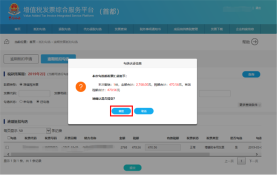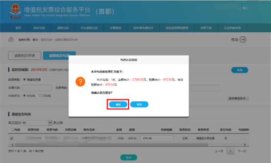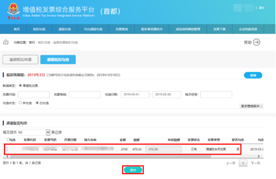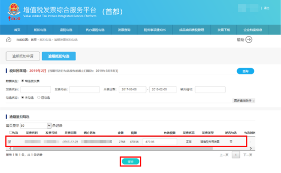 (2)對(duì)顯示為未勾選的發(fā)票進(jìn)行勾選,顯示如下: