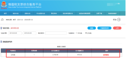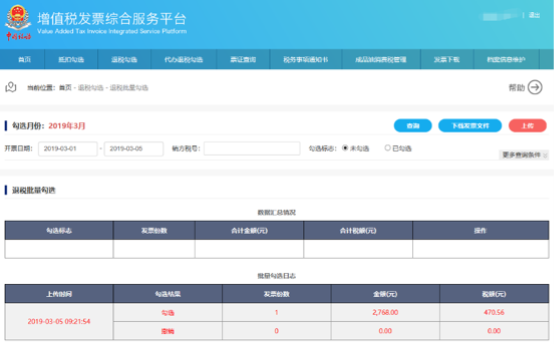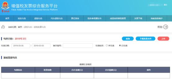 (2)數(shù)據(jù)匯總情況表格里看到符合篩選條件的已勾選發(fā)票匯總信息