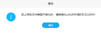 如果上傳的文件類型不正確,系統(tǒng)會出現(xiàn)如下提示: