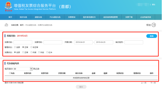 可查詢當(dāng)前月以及以前的發(fā)票,為必錄條件。 |