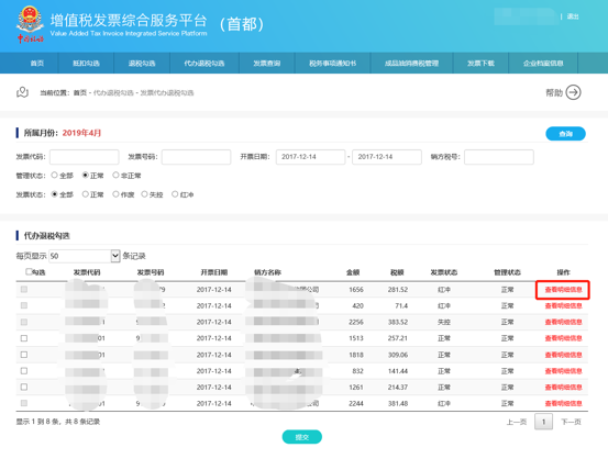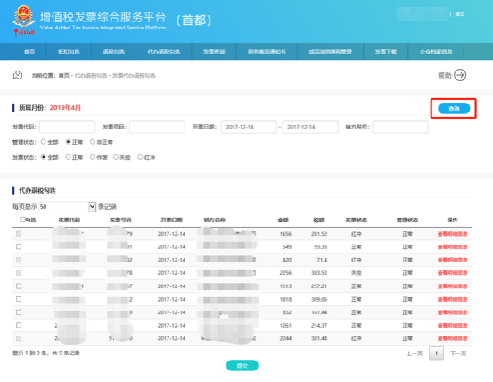 默認(rèn)查詢確認(rèn)狀態(tài)為“正常”的發(fā)票。 |