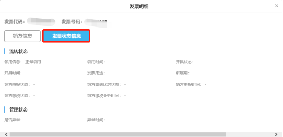 (3)點(diǎn)擊“發(fā)票狀態(tài)信息”按鈕可切換到發(fā)票狀態(tài)信息內(nèi)容,具體如下圖: