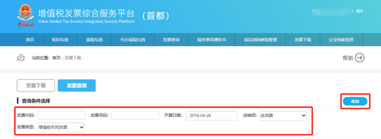 2、錄入要查詢(xún)的發(fā)票信息條件,點(diǎn)擊“查詢(xún)”按鈕。