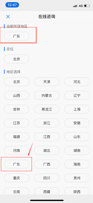 如需在線咨詢,請先注冊,登錄后選擇“廣東”進(jìn)入咨詢界面。如下圖: