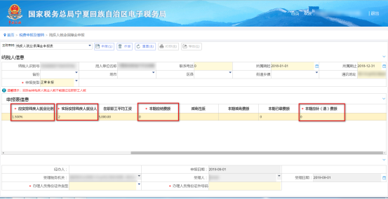 進(jìn)入報(bào)表填寫所需信息及數(shù)據(jù),表格內(nèi)紅色星號(hào)*為必填項(xiàng)。[注:對(duì)行政區(qū)域內(nèi)的機(jī)關(guān)、團(tuán)體、企業(yè)、事業(yè)單位、民辦非企業(yè)單位(含中央、境外駐莞單位)(以下簡(jiǎn)稱“用人單位”),安排殘疾人就業(yè)的比例不得低于本單位在職職工總數(shù)的1.5%,達(dá)不到規(guī)定比例的應(yīng)當(dāng)繳納保障金。]在 “應(yīng)安排殘疾人就業(yè)比例”默認(rèn)帶出1.5%,根據(jù)“實(shí)際安排殘疾人就業(yè)人”數(shù)計(jì)算出“本期應(yīng)納費(fèi)額”,最終核算出“本期應(yīng)補(bǔ)(退)費(fèi)額”。