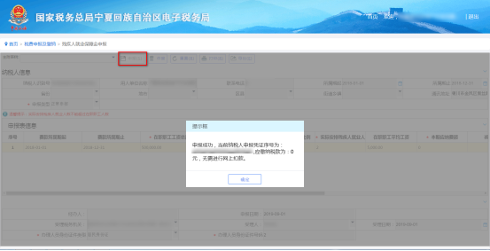 頁面跳出TIPS扣款提示,點(diǎn)擊“確定”進(jìn)行繳稅,繳稅成功后會(huì)跳轉(zhuǎn)至開票成功界面。