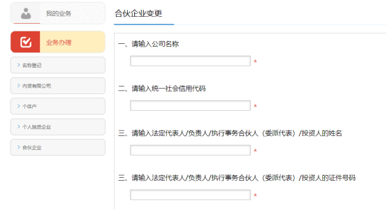準(zhǔn)確錄入合伙企業(yè)基本信息、投資人信息、公司聯(lián)絡(luò)員信息、財務(wù)負(fù)責(zé)人信息和經(jīng)辦人信息等相關(guān)信息;