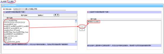 在上圖中,點擊選中左側(cè)“用戶列表”中需要授權(quán)的用戶,然后點擊向右按鈕,完成用戶選擇(或者在左側(cè)“用戶列表”中雙擊需要授權(quán)的用戶,完成用戶選擇),已選擇用戶會在右側(cè)用戶列表框中顯示,最后點擊“保存”按鈕,即可授權(quán)成功。授權(quán)成功后,項目狀態(tài)由“尚未授權(quán)”變?yōu)椤巴扑]書填寫中”。