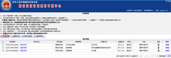 點擊左側(cè)導(dǎo)航欄中的鏈接進(jìn)入申報系統(tǒng)項目列表界面(圖2.1-1)。項目列表顯示本單位所申報的社發(fā)領(lǐng)域項目信息。最初申報時,單位管理員需要創(chuàng)建本單位所申報的社發(fā)領(lǐng)域項目。