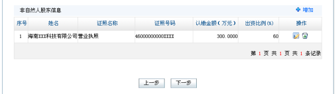 3、名稱預先核準第三步:錄入企業(yè)出資情況,如下圖: