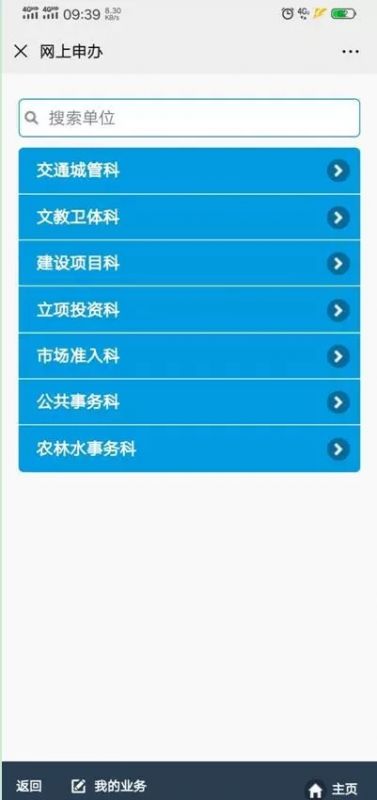 點(diǎn)擊網(wǎng)上申報(bào)進(jìn)入申報(bào)頁(yè)面、選擇單位查找事項(xiàng)