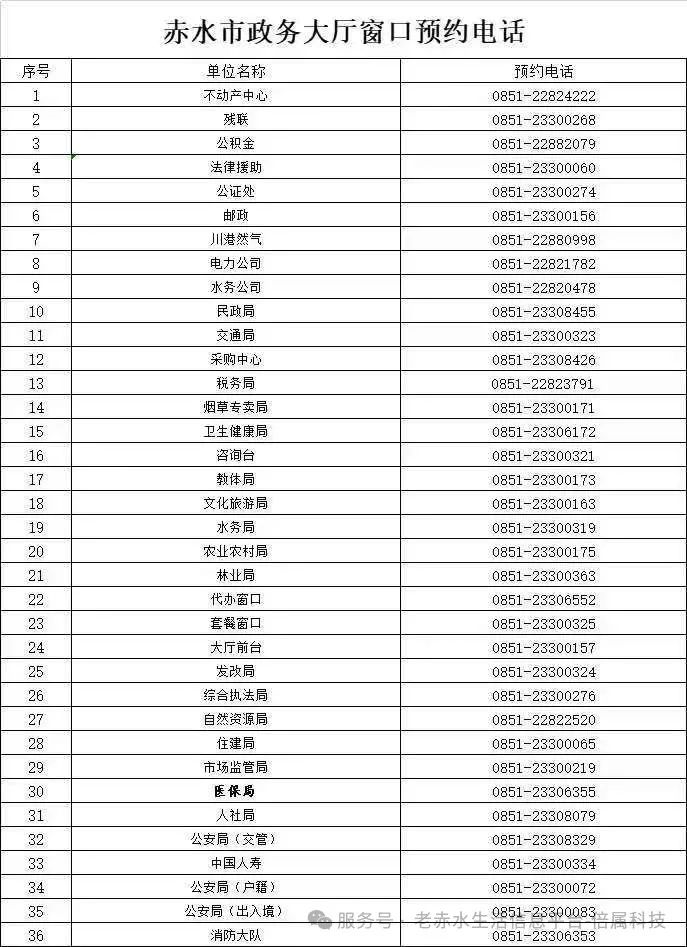 | 赤水市公安局 | 三樓18號 | 23306302 |