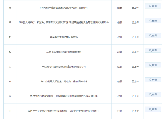 ,狀態(tài)變成“已上傳”,如下圖,點(diǎn)擊可以查看或修改已上傳資料,