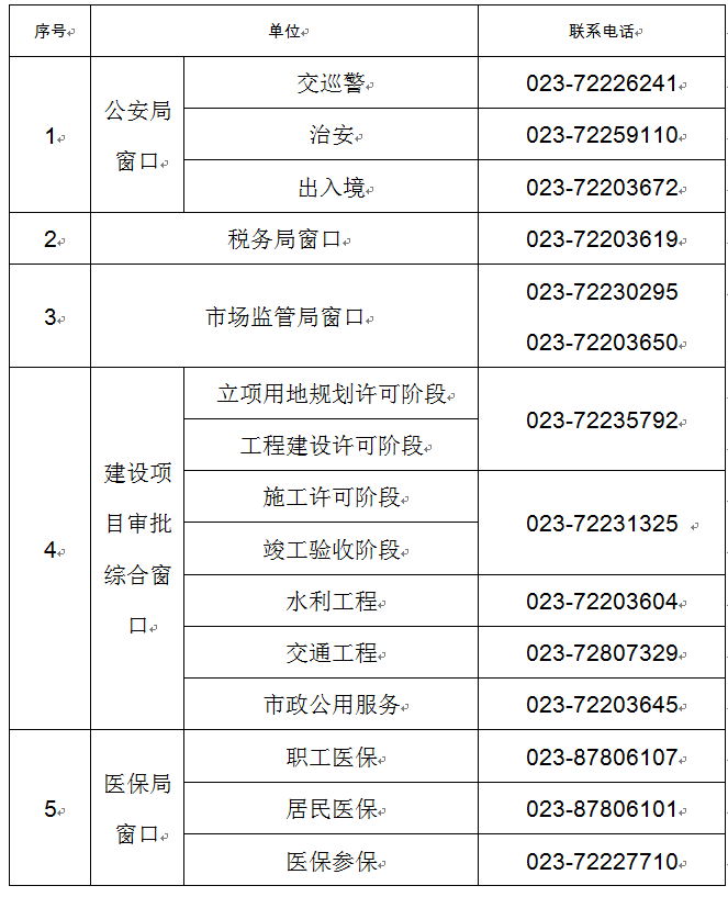 一、涪陵區(qū)行政服務(wù)中心窗口咨詢電話