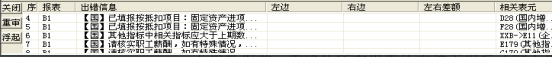 系統(tǒng)將在報(bào)表的下側(cè)顯示出錯(cuò)信息窗口,羅列出錯(cuò)信息,每一錯(cuò)誤信息由所在報(bào)表代號(hào)和相應(yīng)的審核提示信息組成,如下圖所示: