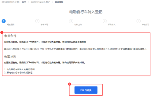 1.閱讀須知:了解審批條件及收取材料,點(diǎn)擊“我已閱讀”