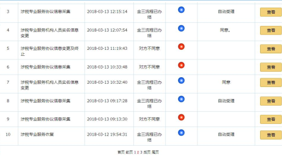 1.進入方式:點擊我要辦稅-涉稅專業(yè)服務(wù)機構(gòu)管理-其他涉稅專業(yè)服務(wù)機構(gòu)管理-辦理事項查詢,進入下圖,