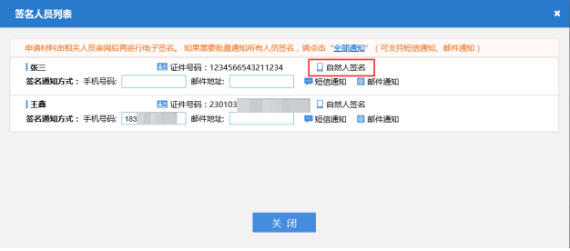 點擊【自然人簽名】按鈕后,使用手機微信的掃一掃功能掃碼簽名,提示簽名成功后即可關閉簽名二維碼的彈窗。