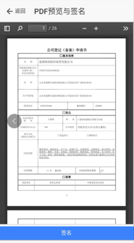 ? 申請人點(diǎn)擊登記申請頁面上的 發(fā)起簽名 按鈕并選擇手機(jī)設(shè)備簽名后,待簽名文檔會自動發(fā)送到股東、法定代表人及委托代理人等相關(guān)人員的手機(jī)APP上,簽名人查看無誤后,簽名人點(diǎn)擊待簽名文件,查看無誤后,按照提示操作簽名即可。