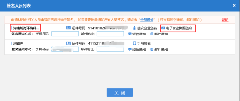 系統(tǒng)簽名升級后,簽名人員列表中顯示需要簽名的企業(yè)名稱及電子營業(yè)簽名方式,如下圖所示: