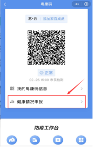 (二)“健康情況申報(bào)”。在“粵康碼”中點(diǎn)擊“健康情況申報(bào)”,完成自主申報(bào)。