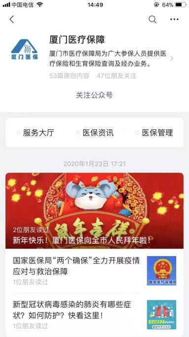 微信公眾號搜索“廈門醫(yī)療保障”。