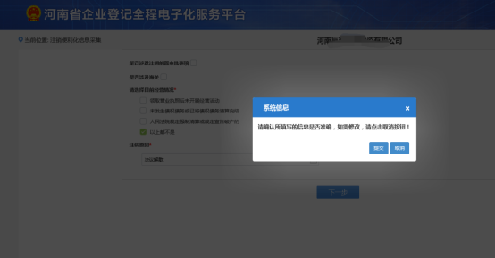 1.3 選擇企業(yè)正確注銷原因,點擊下一步;