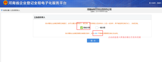 2.1 簡易注銷到期之后,沒有申請注銷的,點擊注銷登記之后會有如下提示;不能再次發(fā)布簡易注銷公告,只能選擇重新走一般注銷。發(fā)布清算組備案 債權人公告