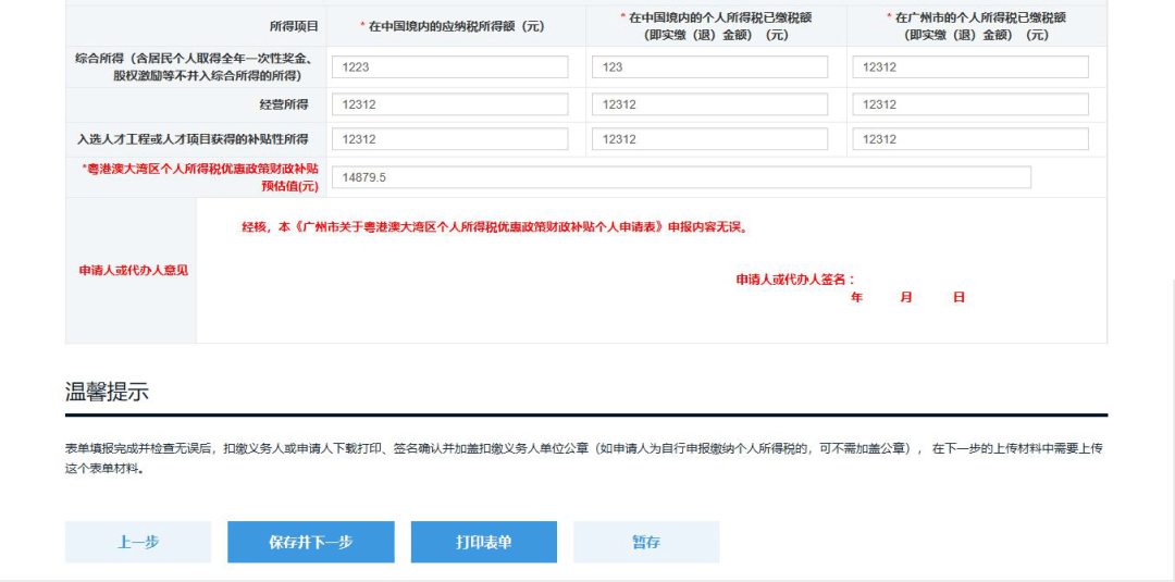 表單填報(bào)完成并檢查無誤后,扣繳義務(wù)人或申請(qǐng)人下載打印、簽名確認(rèn)并加蓋扣繳義務(wù)人單位公章(如申請(qǐng)人為自行申報(bào)繳納個(gè)人所得稅的,可不需加蓋公章),在下一步的上傳材料中需要上傳這個(gè)表單材料。