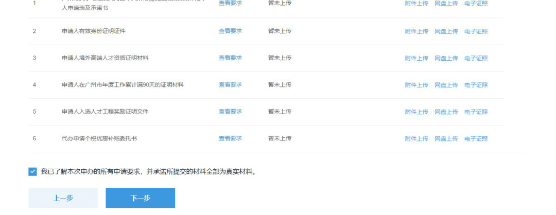 對(duì)照需要上傳的材料名稱進(jìn)行上傳,如下圖