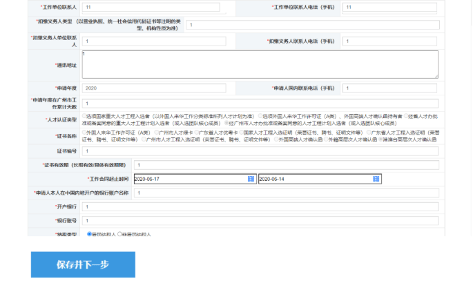 點(diǎn)擊“保存下一步”按鈕,進(jìn)入填寫表單環(huán)節(jié)