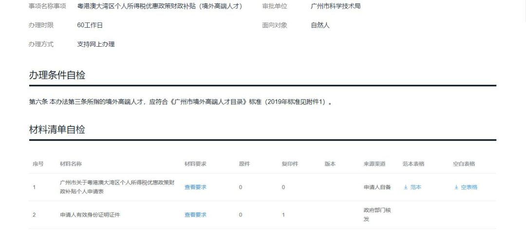 事項(xiàng)名稱:粵港澳大灣區(qū)個(gè)人所得稅優(yōu)惠政策財(cái)政補(bǔ)貼(境外高端人才) 日常用語:無 。。。