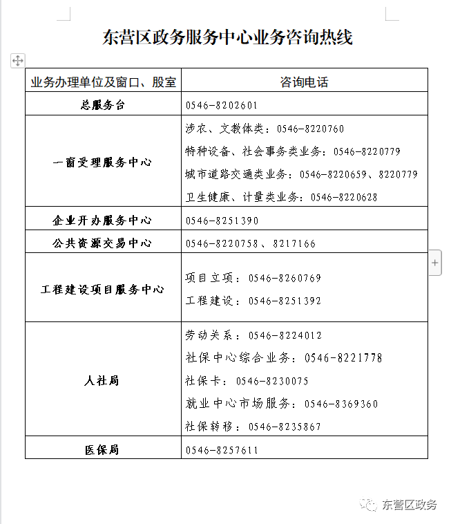 東營市各(區(qū))縣政務(wù)服務(wù)中心辦事大廳入駐單位窗口咨詢電話