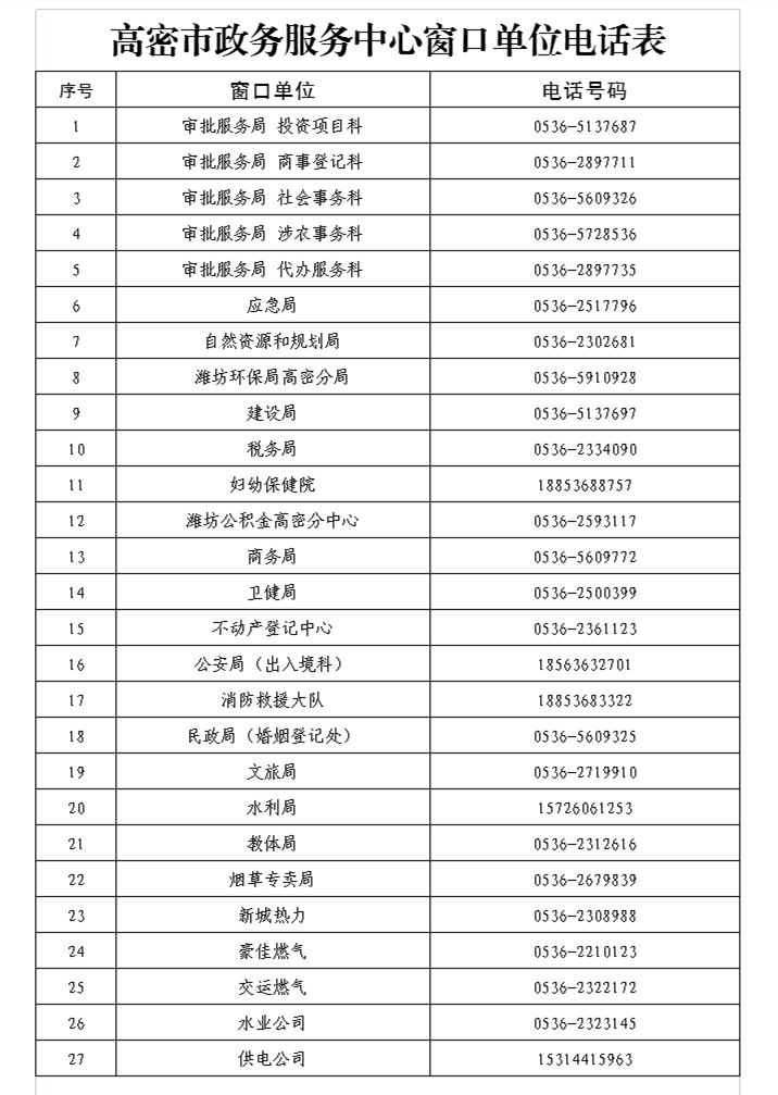 | 高密市審批服務(wù)局 | 0536-2719128 |
