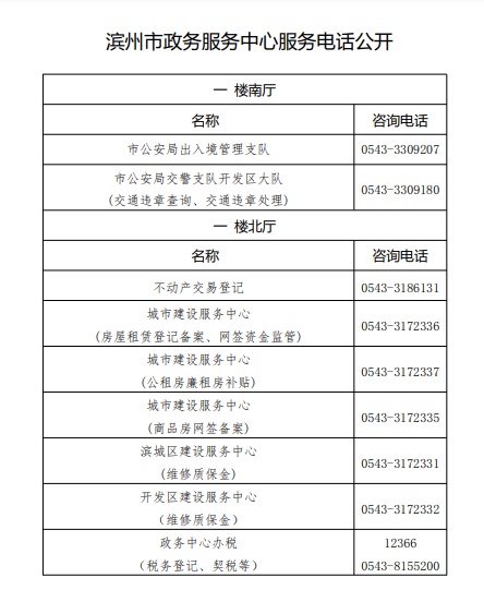 | 濱州市行政審批服務(wù)局 | 0543-3181351 | |