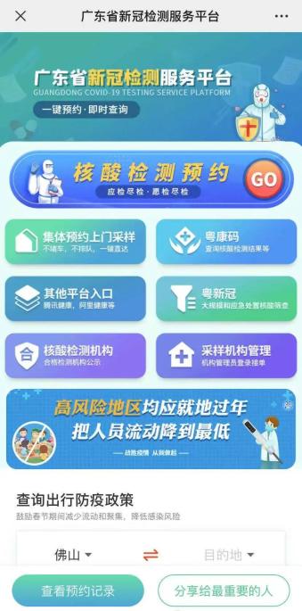 為落實(shí)國務(wù)院聯(lián)防聯(lián)控機(jī)制綜合組《關(guān)于有序做好春運(yùn)期間群眾出行核酸檢測(cè)工作的通知》,廣東省衛(wèi)生健康委1月29日下發(fā)通知,明確全省不再收取新冠病毒核酸檢測(cè)掛號(hào)費(fèi),要求安排足夠工作人員在夜間和周末開展核酸檢測(cè)工作,有序做好春運(yùn)期間群眾出行核酸檢測(cè)工作,全力滿足廣大群眾新冠病毒檢測(cè)需求。同時(shí),由廣東省衛(wèi)生健康委員會(huì)主辦的廣東省新冠檢測(cè)服務(wù)平臺(tái)正式上線!