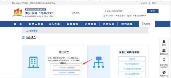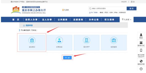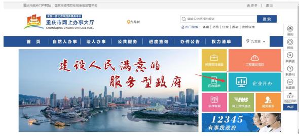 在“重慶市網(wǎng)上辦事大廳”區(qū)縣界面,選擇“企業(yè)開辦”。