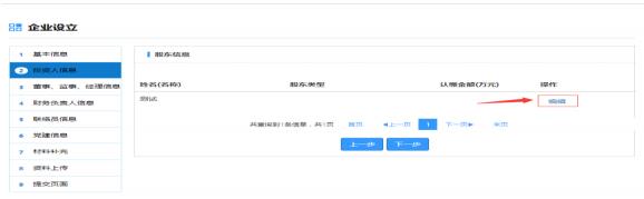 進(jìn)入【投資人信息】頁(yè)面后,請(qǐng)點(diǎn)擊【添加】錄入股東信息,直至所有股東錄入完畢。