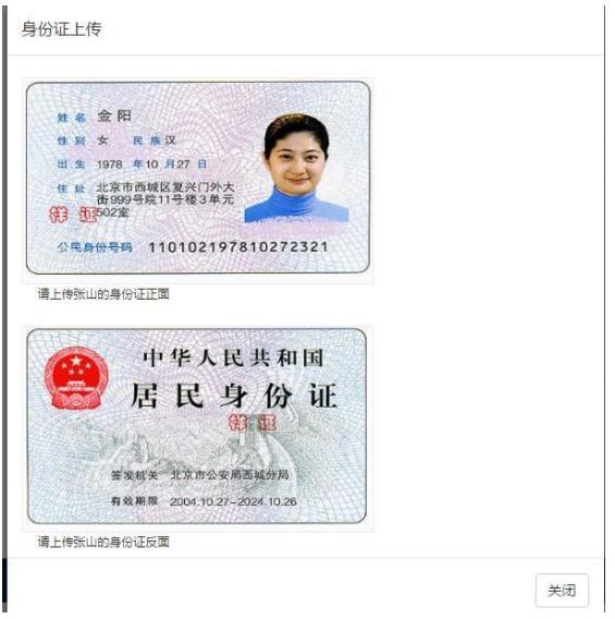 身份證正反面上傳成功之后,點(diǎn)擊【關(guān)閉】按鈕。