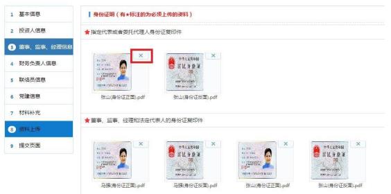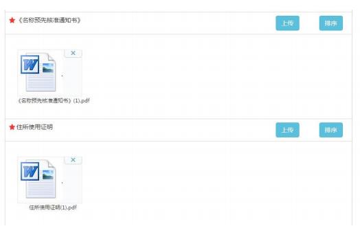 請(qǐng)?zhí)崆皩⑾嚓P(guān)的身份證件、證明材料等資料制成照片或電子文檔(單個(gè)文件大小不超過(guò) 3M),存儲(chǔ)至電腦硬盤,并按照文檔內(nèi)容進(jìn)行規(guī)范命名,如:名稱預(yù)先核準(zhǔn)通知書、委托代理人 XXX 身份證件、股東 XXX 身份證件、董事 XX 身份證件、住所使用證明等。居民身份證應(yīng)當(dāng)有正反兩面照片。注意,應(yīng)先點(diǎn)擊圖片中【】,找到需要上傳的文 件后,系統(tǒng)自動(dòng)上傳文件。若上傳成功,該文件會(huì)顯示出來(lái),申請(qǐng)人可以繼續(xù)選擇其他文件進(jìn)行上傳。