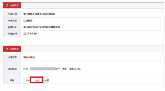 【預(yù)審未通過】表示您提交的申請資料不齊或不符合要求,請按照登記機關(guān)反饋的修改意見修改完善后,重新提交。