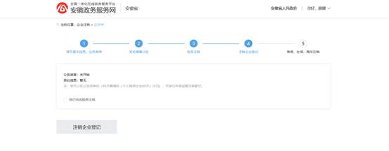 點擊“注銷企業(yè)登記”跳轉安徽省工商全程電子化系統(tǒng)進行注銷企業(yè)登記操作;
