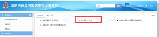 操作流程:登錄重慶市電子稅務(wù)局-我要辦稅 - 信息報告 - 制度信息報告-終止三方協(xié)議