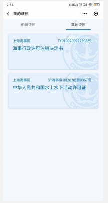 點(diǎn)擊個人中心頁面輪播證照卡片右上角的“全部”跳轉(zhuǎn)到我的證照頁面。在我的證照頁面可以對“船員證照”進(jìn)行糾錯、亮證操作。如下圖所示。
